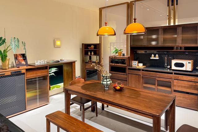 作为本次参展的核心亮点,林氏家居首次以独立展馆形式集中呈现五大实木套系,覆盖黑胡桃木、橡木、水曲柳等多个材质类型,全方位展现品牌在实木领域的深耕成果。展出的套系兼顾空间美学与实用功能,通过客厅、餐厅、卧室、书房等场景的一体化搭配,强化全屋搭配的整体性。据悉,2025年品牌对实木产品进行全面升级,在材质选择上甄选FAS级优质木材,同时将实木产品质保期统一提升至10年,将产品端的品质追求转化为消费者可感知的长期保障。